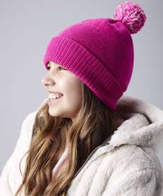 Junior corkscrew pom pom beanie