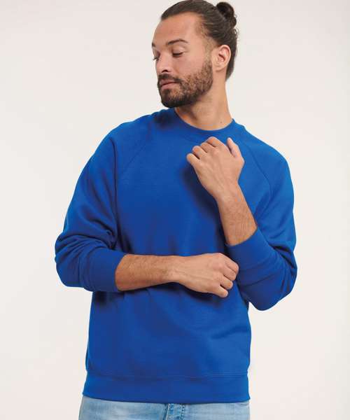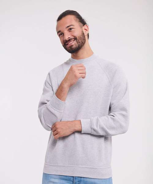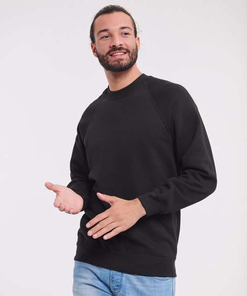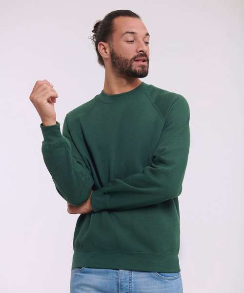Twin needle coverseams on neck, raglan sleeve, cuffs and waistband for extra durability. Herringbone back neck tape. Spotshield™ stain resistant coating for fabric protection. fade resistant.