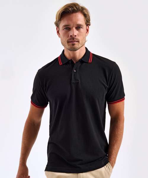 Classic fit polo with tipped contrast detail to the collar and cuffs. 2 button placket. Short sleeves. Side vents. Knitted collar and cuffs. Machine washable. Product contains no branded neck label. Removable Kimble or looped garment tags. Inner seam label holds important product information on one label with a second label containing brand information which can be cut-away. Please note old stock may contain a fixed branded label.