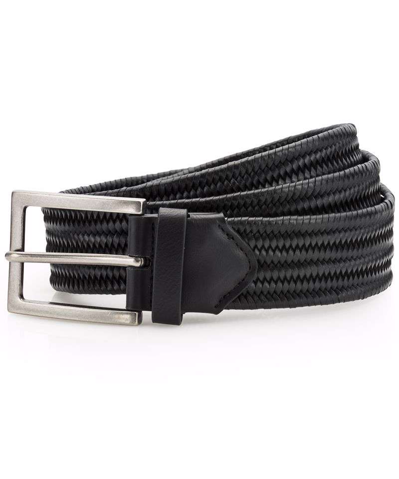 Leather braid belt. Buckle and belt loop. Adjustable length - belt can be fastened at multiple lengths due to braid stitching.
