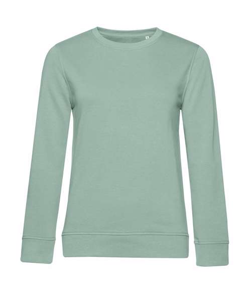 Trendy organic and organic in conversion crew neck sweatshirt for women. Retail fashion-oriented look and feel. Strong styling with great fit and perfect length. Side seams. Identical colours for men and women. Easy branding – B&C No Label Solution. Inside single Jersey half moon in back. Qualitative herringbone neck tape.