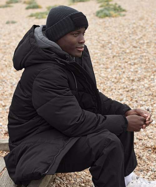 Contains 100% certified recycled material. Contains at least 50% recycled polyester. Chunky double layer knit. Engineered crown for maximum comfort. Cotton twill patch for decoration. Zippered front patch pocket. TearAway label for ease of rebranding.