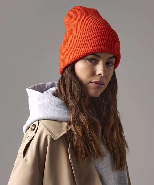 A cosy, deep-cuffed beanie is the ultimate blank canvas. The double-layer ribbed knit design keeps the heat in on the chilliest days. Crafted from recycled polyester, with an engineered crown for optimal comfort, this classic beanie with a wide cuff leaves ample space for personalisation or branding. It comes to life in a large assortment of colours from a vast and vibrant palette.