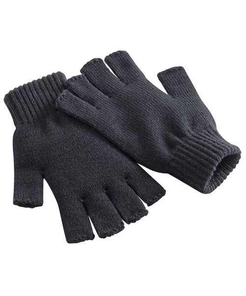 Fingerless style. One piece knit. Ribbed cuff. Available in two sizes.