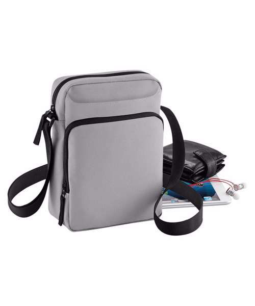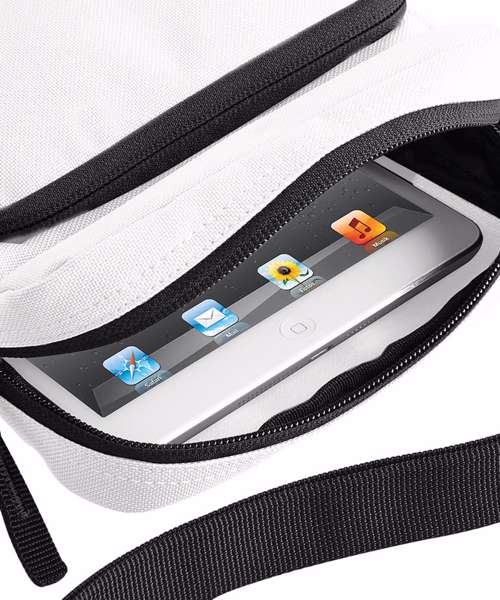Sized to fit iPad mini/ tablets. Adjustable webbing shoulder strap. TearAway label for ease of rebranding. Zippered main compartment. Zippered front pocket.