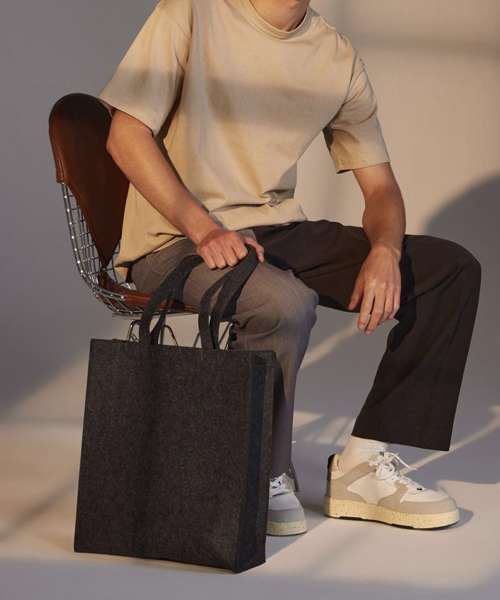 Available as a standalone piece and as part of a wider collection, the felt tote bag offers both superior sales potential and premium craftsmanship. This minimalist tote includes reinforced seams and has a large multi-use capacity.