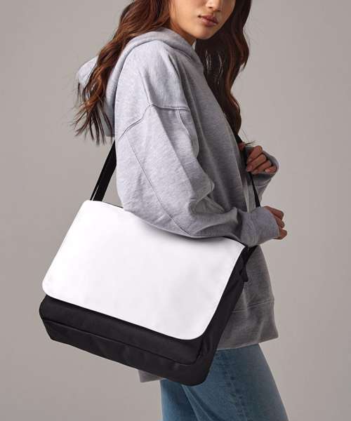 HD sublimation image surface. Press-optimised decoration panel. Adjustable shoulder strap. Zippered main compartment. Zippered mesh pocket under flap. Rip-Strip™ closure.