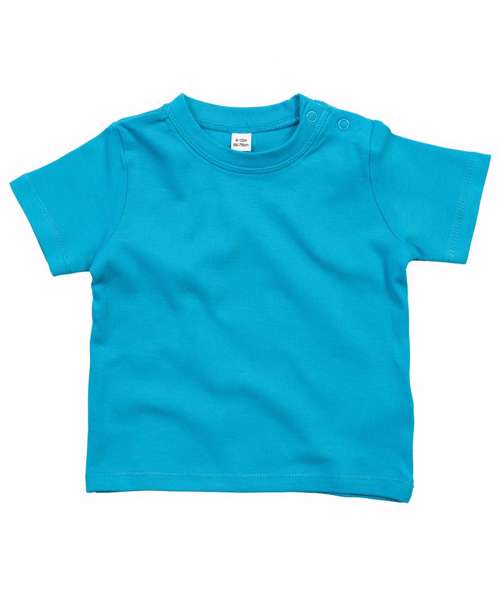 Baby pure cotton crew neck T in soft, comfortable stretchy fabric with poppers at shoulder. Oeko-Tex certified. Organic 100 Content Standard certified.