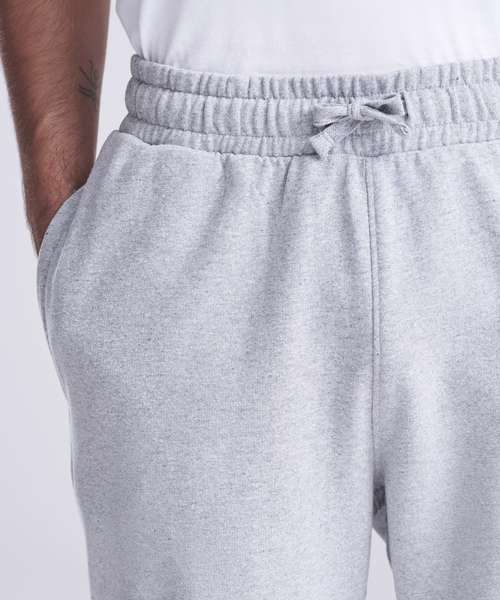 Relaxed unisex fit. 70% recycled cotton. Cuffed leg opening. Elasticated waist with DTM drawcords. Brushed inner fleece. Side pockets. Size tab only, for easy rebranding.