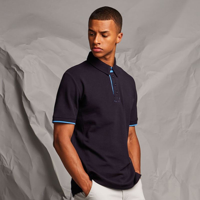 A stylish variation of the standard polo shirt with contrast woven inner collar band, placket and side vents. Tipped sleeves and flat-lock stitching further elevates this premium quality style. Every day brings a chance to make a change; take an exciting new direction with Front Row.
