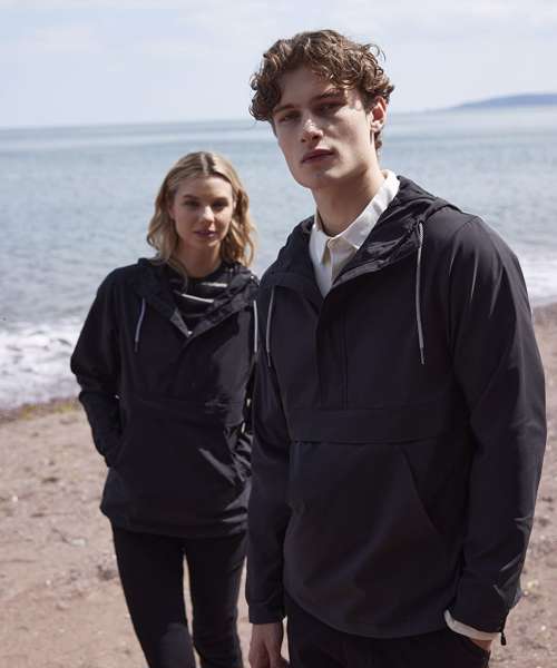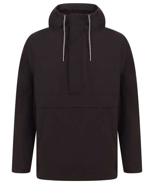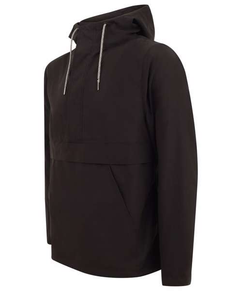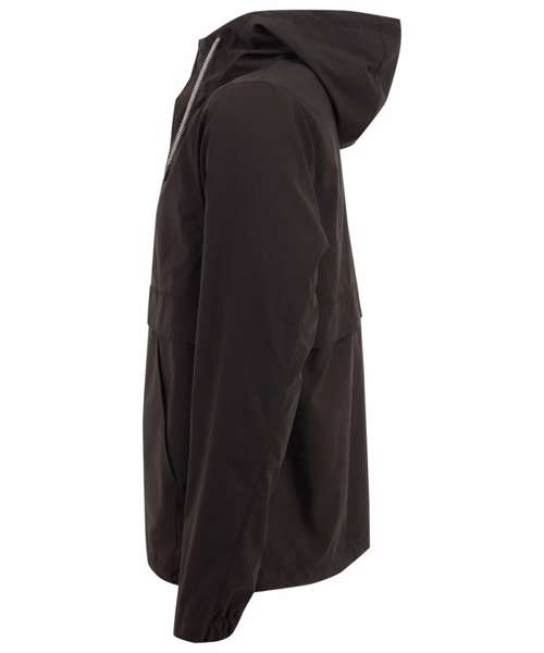 Hooded pullover jacket. Regular fit. Chest panel, front and back. Showerproof fabric, with mesh lining. Part-elasticated cuffs. 3-piece hood. Functional contrast lace drawcords around hood. Coated metal eyelets at hood opening. Centre front half- zip opening. Textured zip puller, with cord. Self-fabric storm flap, with hook and loop fastening. Elasticated cord through inside hem, with plastic toggles. Side-seam zip-opening, left hand side as worn. Large kangaroo style pockets. Inside patch pocket (with hook and loop fastening). Internal embroidery access. Back neck hanging loop.