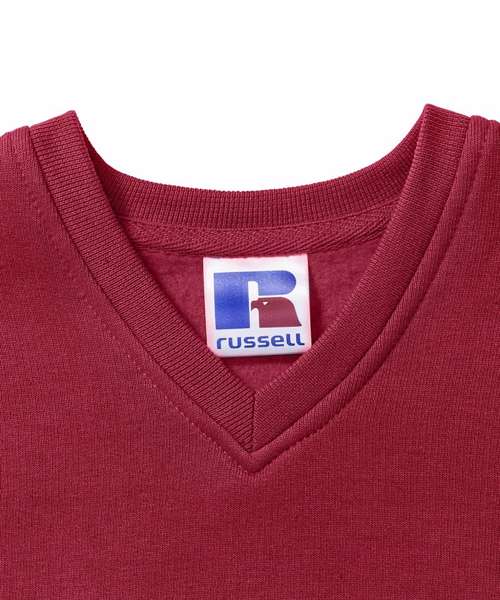 V-neck sweatshirt with side seams. Set-in-sleeves. 1x1 rib trim on collar, cuffs and waistband. BSCI certified.