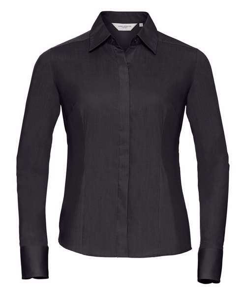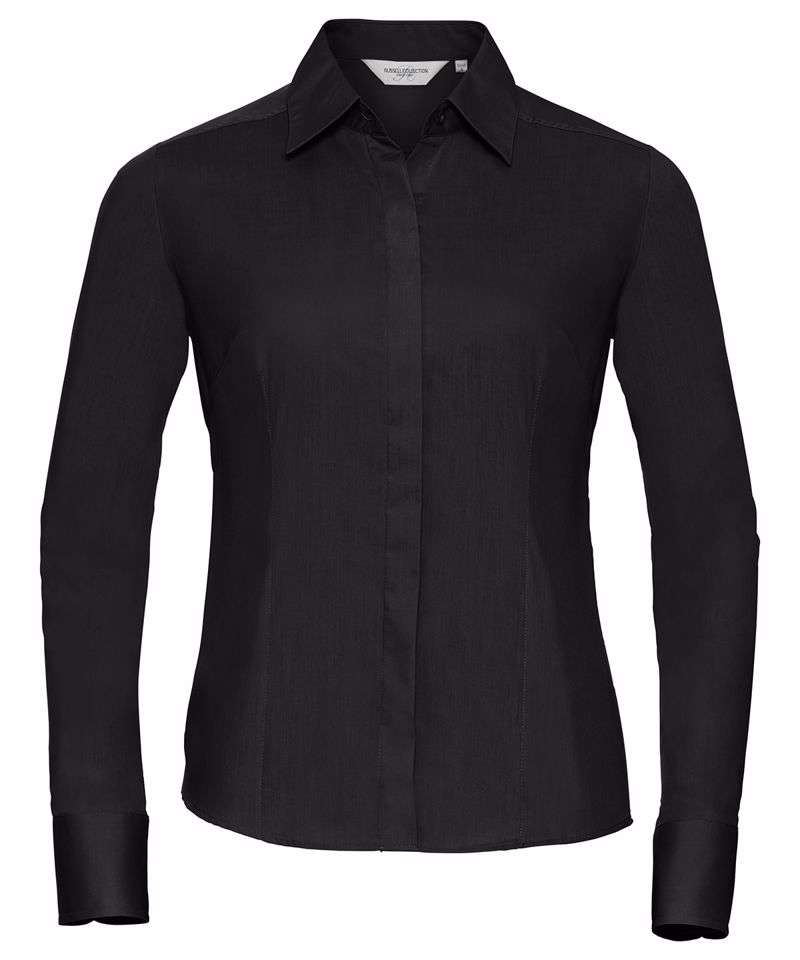 J924F: Women's long sleeve polycotton easycare fitted poplin shirt
