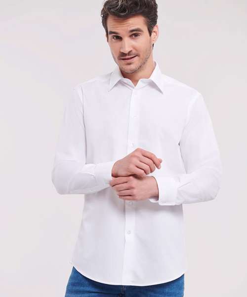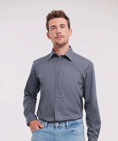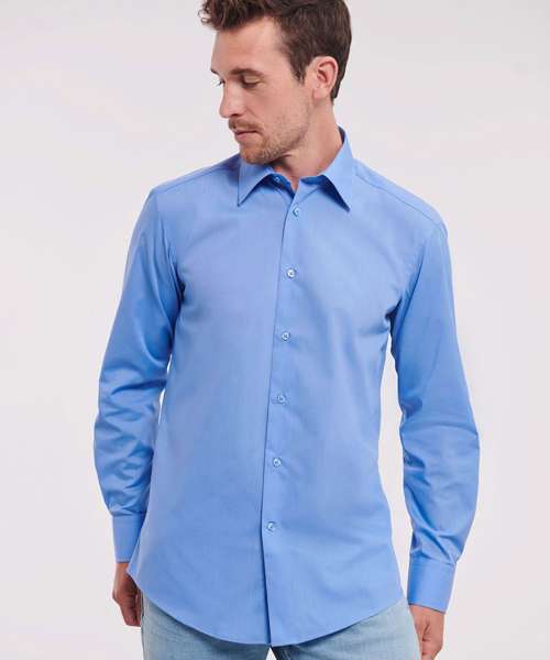 J924M: Long sleeve polycotton easycare fitted poplin shirt
