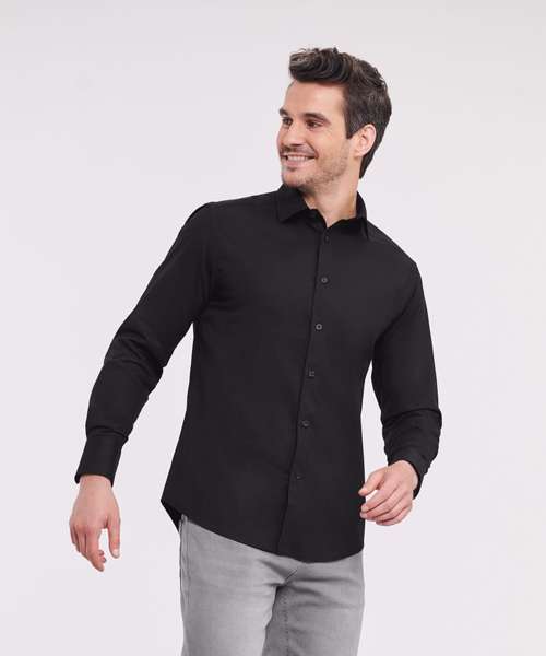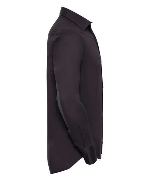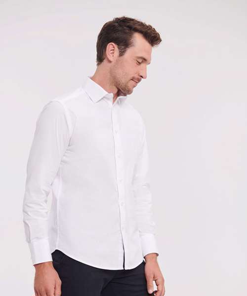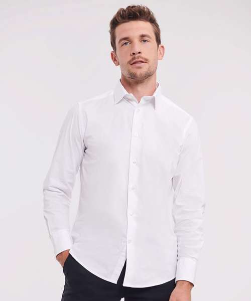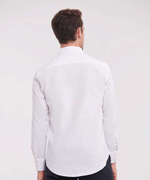 This is an elegant and very durable shirt with all the natural wearer comfort of 100% cotton. Classic style boned collar. Rounded 2 button adjustable cuff plus single button on cuff gauntlet. Back yoke with 2 side pleats. Pocket over left chest mitred edge pocket. Straight bottom hem.