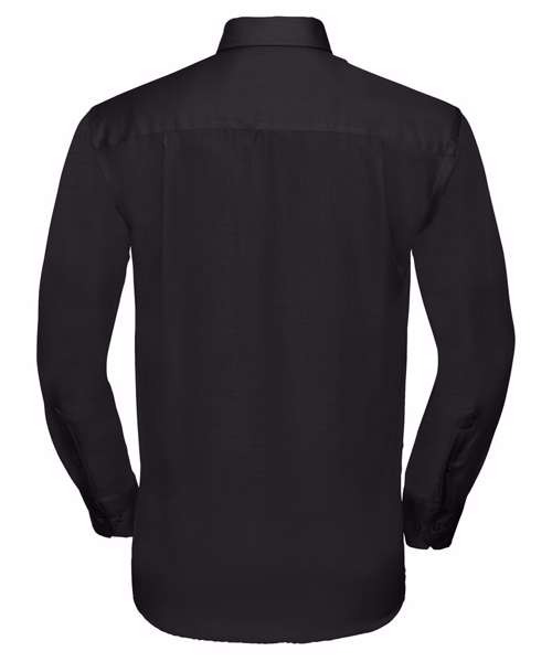 Made using the newest technologies of non-iron fabric that stays wrinkle free and keeps the wearer looking and feeling smart all day long. The classic gents shirt cut with semi-cut away button down collar and chest pocket. Contemporary size mitred cuff, adjustable with two buttons and with option for cuff links. Back yoke with two pleats. Rounded hem.
