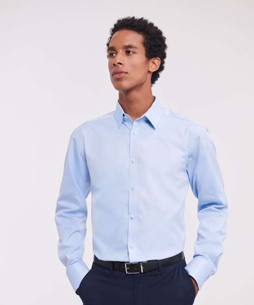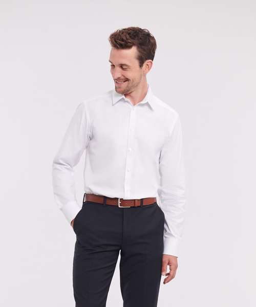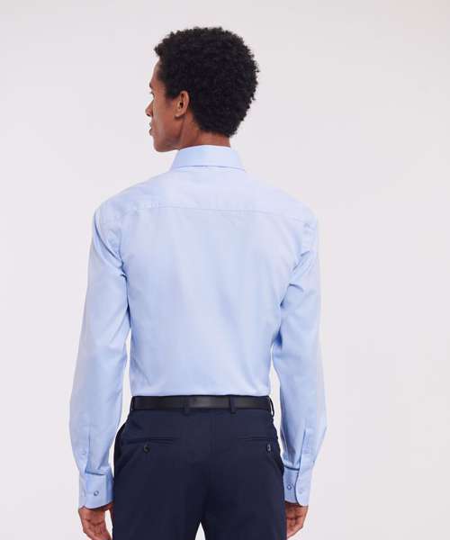 The first herringbone shirt to the imprint market. The ideal combination of style and durability, a contemporary alternative to the Oxford. Classic retail fabric. Easy care. No show through. Tailored fit. Short, semi cutaway collar. Narrow placket. Rounded cuffs. Cuff link option.