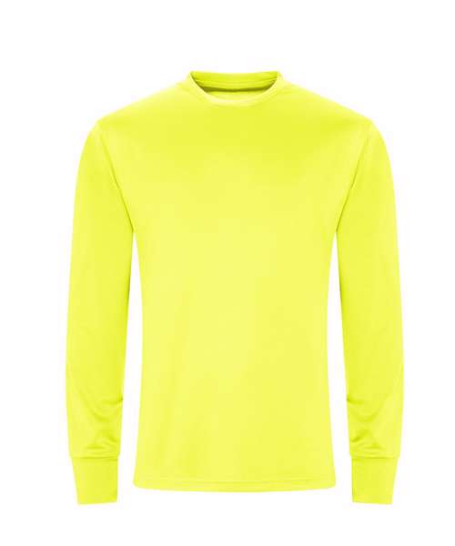 Relaxed sports fit. Thumbholes. Back waist zipped pocket. AWDis’ own lightweight Neoteric™ smooth fabric with inherent wickability and quick-drying properties. Self-fabric taped back neck. Twin-needle stitching detail. Self-fabric crew neck. Reflective tab detail. Set-in long sleeve design.
