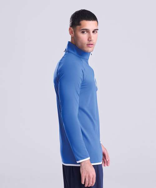 Stay warm and comfortable in this CoolFit ½ zip sweat which is ideal for layering. A tight fit with self-fabric, contrast colour binding at the zip, cuffs and hem. The raglan sleeves create ease of movement and there’s even a reflective tab on the back neck to help keep ear phone cords in place so you can listen to your favourite playlist to keep you motivated.