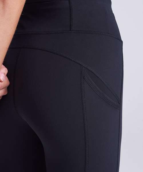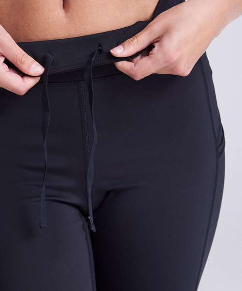 Four-way stretch for maximum movement. Side phone pockets. Adjustable waist cord. Back zip pocket. Ergonomic fit avoiding high-abrasion areas for maximum comfort. Made with recycled polyester.