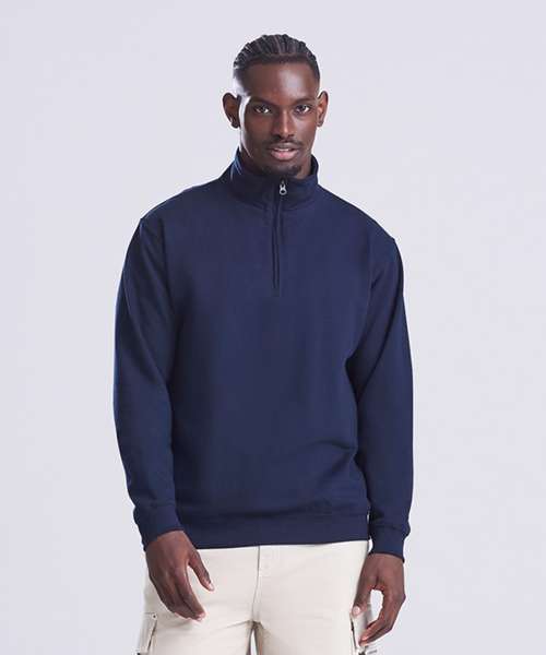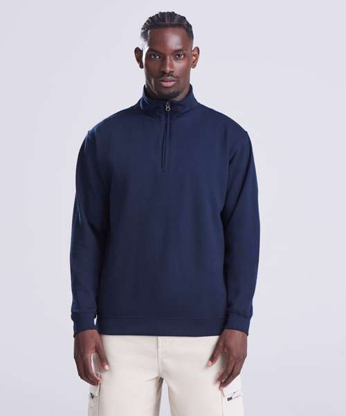 ¼ zip neck. Metal YKK zipper and puller. Ribbed cuffs and hem. Soft cotton faced fabric creates ideal printing surface. Simple tear out label makes it perferct for rebranding. Brushed inner fleece.
