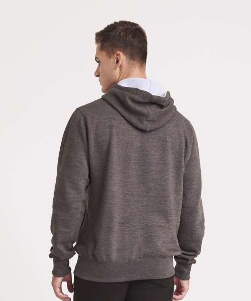 Overlock stitching detail throughout. Double fabric hood with Heather Grey waffle fabric inner. Chunky white flat lace drawcords. Deep ribbed cuffs and hem. Soft cotton faced fabric creates ideal printing surface. Simple tear out label makes it prefect for rebranding. Side panels for stylish fit. Side pockets. Pull over Hoodie. Brushed inner fleece.