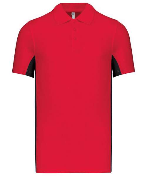 65% polyester/35% cotton. Piqué knit. Ribbed collar. 3-button matching placket. Contrast panels down arm and sides. Self-fabric cuffs. Certified STANDARD 100 by OEKO-TEX® N° CQ 1007/7, IFTH.