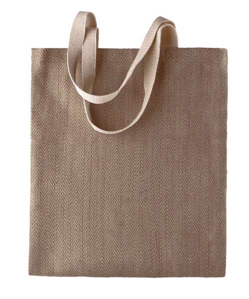 Soft dyed yarn jute bag, with cotton handles. 100% ecological, 100% biodegradable, 100% natural. BSCI certified. SEDEX certified.
