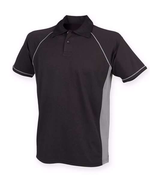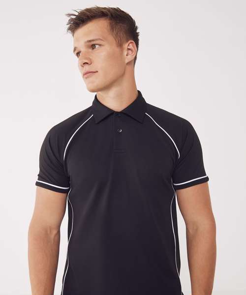 Made using Coolplus® specially modified polyester fibres enable rapid absorption of perspiration from skin surface. Piping along raglan seams and down front and back. 2 button placket self fabric collar.
