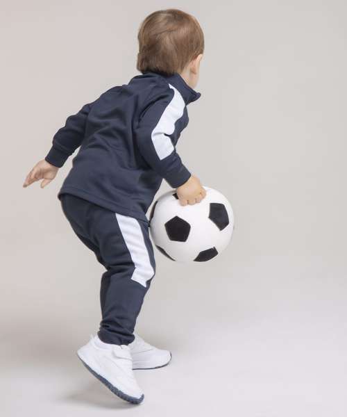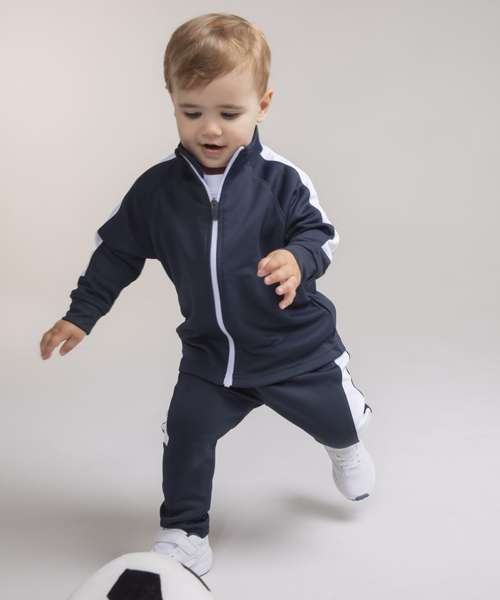 This striking contrast panelled tracksuit combination is enough to make a mini athlete! For leisurewear or sports clubs.