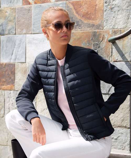 A premium design complemented by expertise in quality outerwear makes Crescent a versatile hybrid jacket, elegantly crafted for layering and transitional weather. With smoothly knitted sleeves bonded with fleece, low-cut collar and strategically-placed panels with padding in recycled polyester at the front body, this luxury hybrid jacket provides essential warmth where you need it most. Crescent is a versatile piece of outerwear that pairs nicely with both classic and more modern garments.