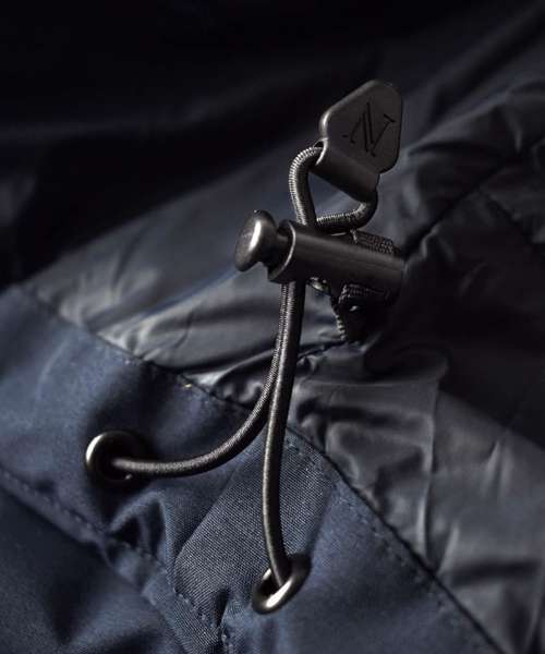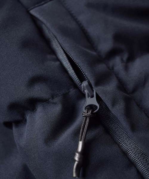 Outer fabric: 94% Recycled polyester, 6% Spandex. TPU 10K/3K. Lining: 100% Recycled nylon. Filling: 90% Down, 10% Feather