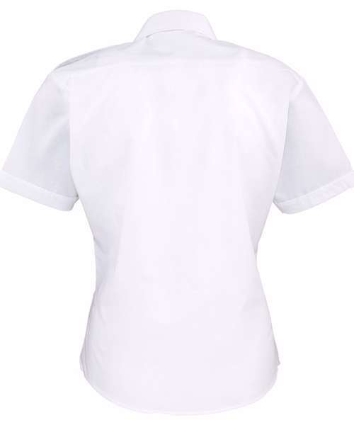 Women's short sleeve easycare pilot shirt. Stiffened collar. 2 chest pockets with button flaps. Combined pen pocket on left breast pocket. Short sleeves. Epaulettes on shoulders.