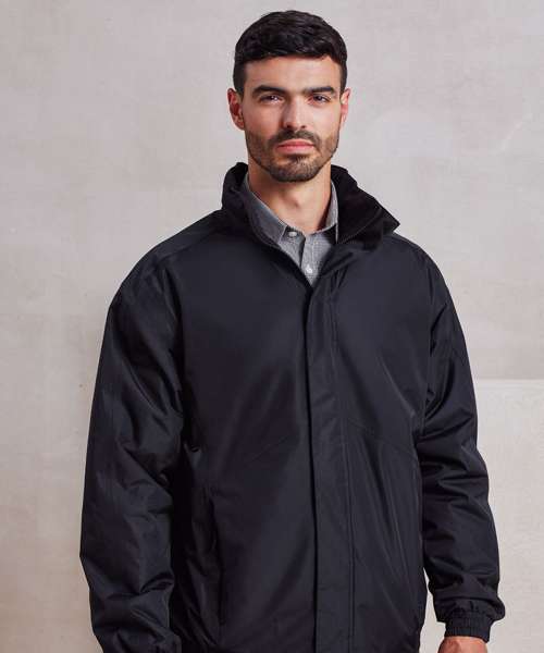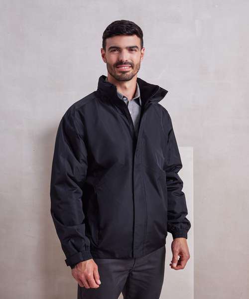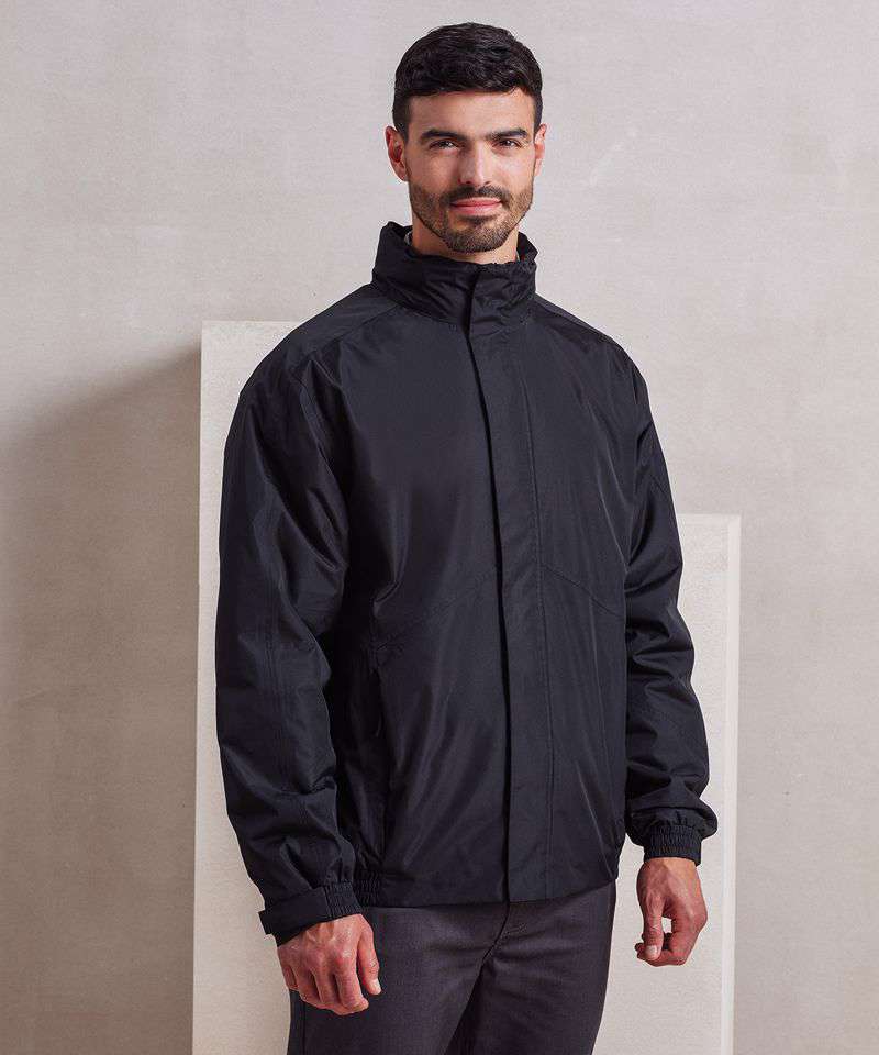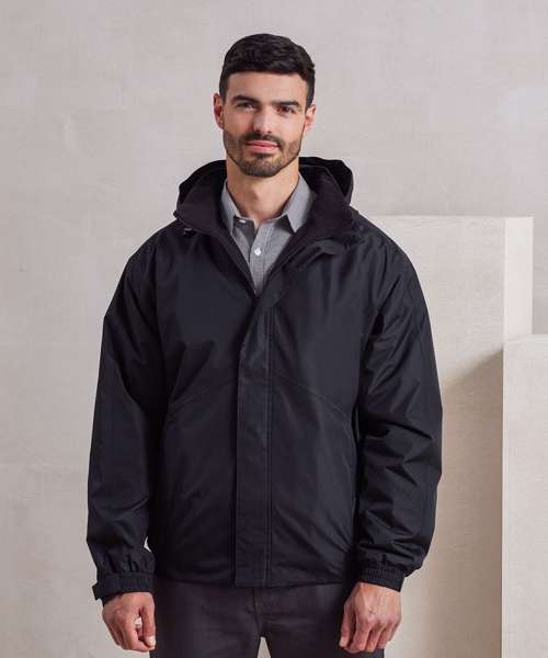 With Premier's Hydrochecker fabric guaranteeing a weatherproof jacket. Fully lined with warm microfleece and a handy inner patch pocket. Hidden zip for embroidery access. High neck cadet collar which facilitates a fold-away drawcord hood. Full zip-through with storm flap and hook and loop fastening. Outer fabric with PVC coating and taped seams for additional waterproofing. Side seamed zipped pockets with fleece lining. Part elasticated cuffs with adjustable hook and loop fastening. Part elasticated hem.Waterproof rating of 5000mm conforms to UKCA & CE EN343 1:1
