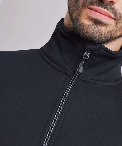 Men’s zip-through sweat made with spun dyed certified recycled polyester yarns, a fabric with less impact for a corporate-casual solution. Styled with a fashionable cadet collar and a contrast coloured zip with zip pull. Two external side pockets bear the same zip styling, for a uniform look. Finished with top stitching for a pleasing design feature.