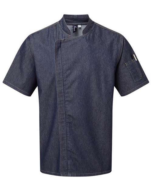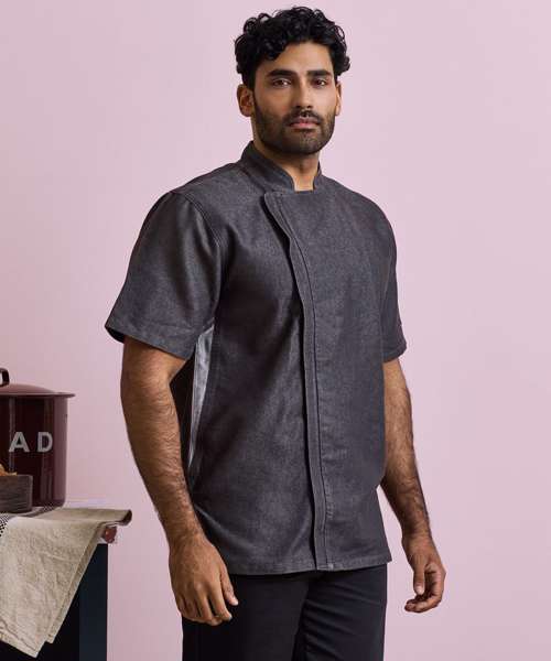 An easy-wearing pull-on chefs jacket with a concealed zip-through fastening. The two denim styles have reverse coloured panels under the arm and down the sides with the White version benefits from an under-arm breathable mesh panel. Styled with a mandarin collar and side vents for a typical style seen in many kitchen environments.