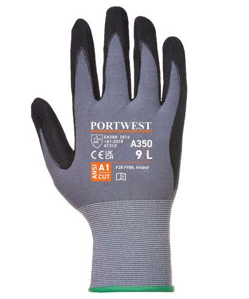 Super light 15g nylon and Spandex liner dipped with soft nitrile foam and PU for the ultimate in comfort dexterity and sensitivity. Protects against oil in warm humid conditions.