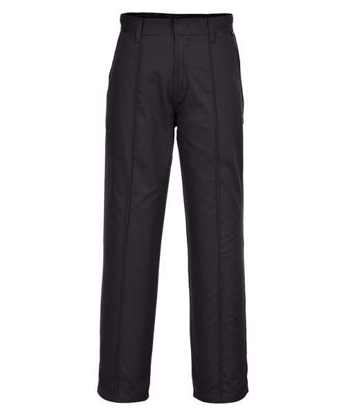This classic style is durable and comfortable with a sewn in front crease which adds to the professional look. Features include two side pockets and a back jetted pocket.