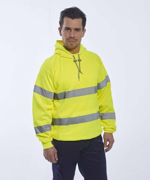 This hooded sweatshirt is ideal when it's too cool for a t-shirt but not cold enough for a jacket. Offering exceptional comfort, the fit is roomy and the fabric is soft to touch. Featuring a hood for cooler conditions. Made from a special blend of 65% polyester, 35% cotton with a brushed back for extra warmth and comfort. The fabric provides breathability and flexibility combined with superior strength and durability and is manufactured to withstand the most rigorous working environments. Conforms to EN ISO 20471 Class 3. Orange conforms to RIS-3279-TOM ISSUE 1.
