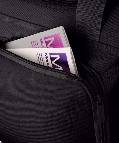 Detachable adjustable shoulder strap with pad. Zippered end pocket. Zippered front pocket. Protective base feet. Internal baseboard. Padded hand grip.