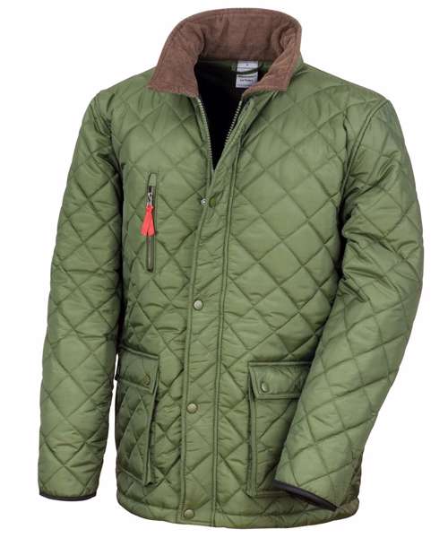 Corduroy collar. Stud front external storm flap. Heavy front 2-way zip. Stud closing patch pocket with handwarmer sides. Zipped external chest pocket. 2 x 2 diamond stitching. Sandwich quilted fleece lining. Rear studded saddle vents. Back panel detail. Hangtag. Fashionable quilted design. Classic styling with contemporary fit. Substantial weight and soft handle. Quiet to wear. Water repellent and windproof. Decoration Guidelines: Decorating methods: Embroidery. Decorator's access point: Inside back panel.