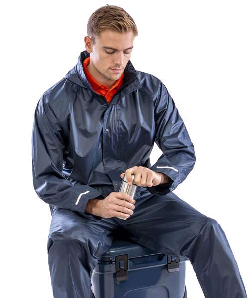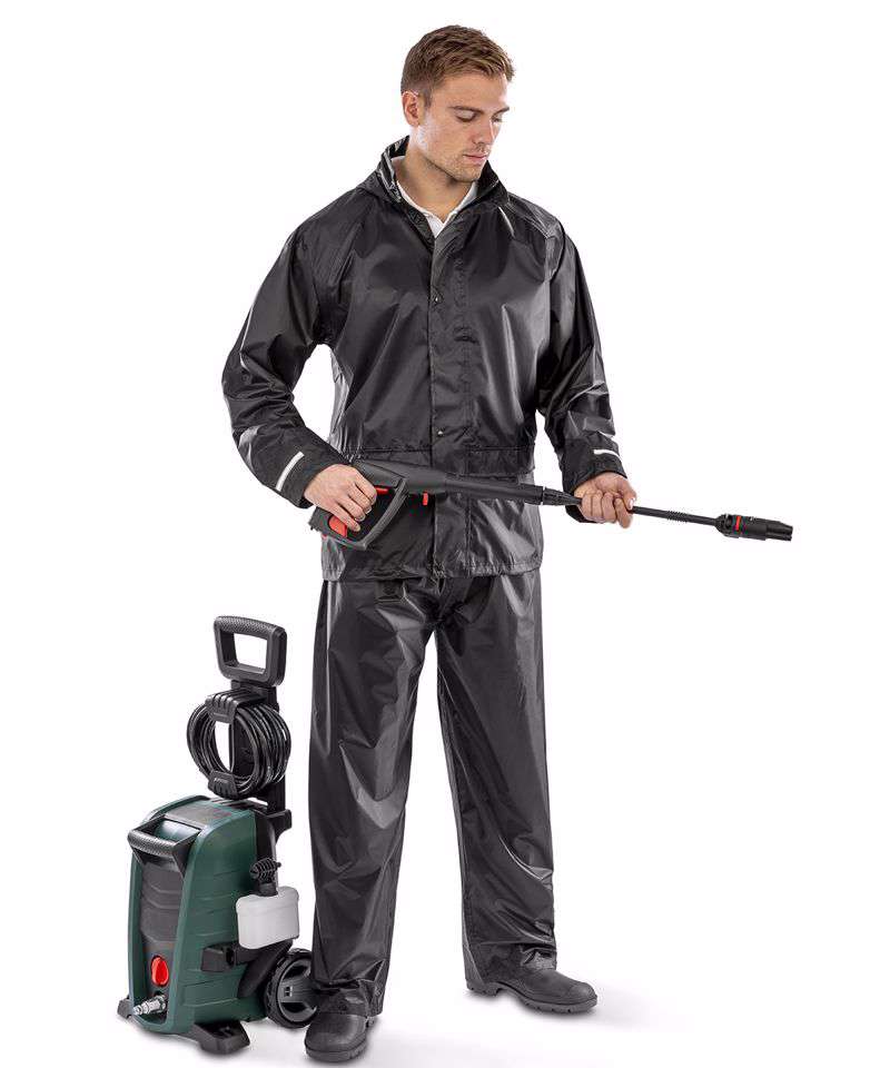 A budget-friendly promotional wear waterproof suit.