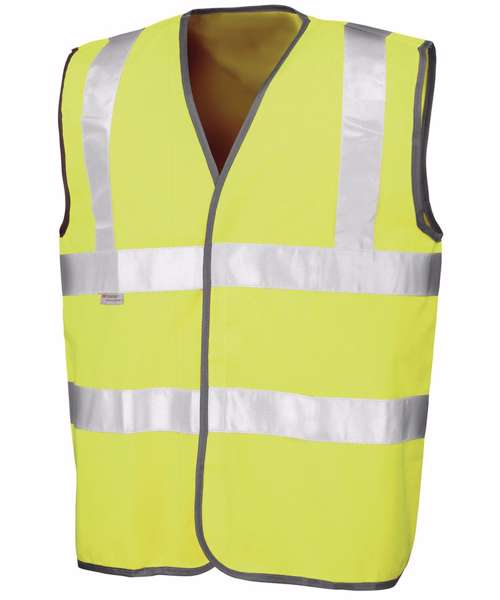 120g/m² 100% Polyester High visibility Class 2 safety vest with 2 bands of reflective tape around torso and one brace over each shoulder. Tear-release front fastening for easy access and grey polyester-bound edges. Generous in size, allowing to be worn as an overgarment. EN ISO 20471 + A1:2016 CLASS 2. RIS-3279-TOM ISSUE 2:2019 CLASS 2 (orange). Decorating methods: Embroidery, transfer, print.