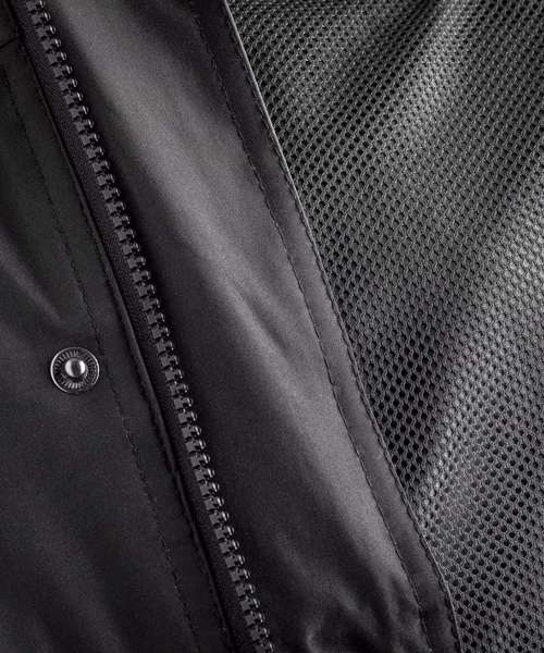 Outer: 200gsm StormDri polyester with PVC coating. Lining upper body: 100% Polyester mesh. Lower body and sleeves: 190T Polyester taffeta