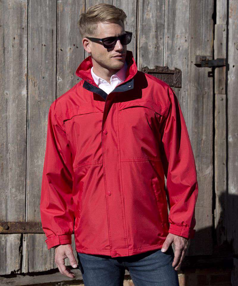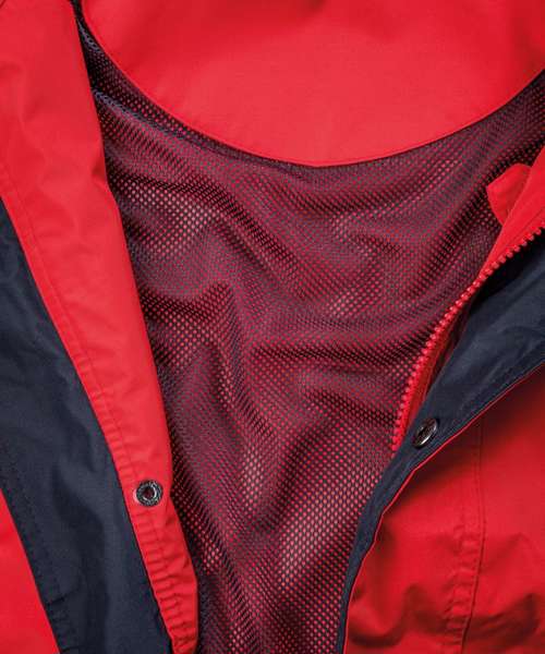 Taped seams and twin needle stitched seams. Concealed hood in collar. Full front zip fastening. 2 side pockets, 1 chest pocket and 1 inside phone pocket. Elasticated cuffs with tear release adjusters. Adjustable shockcord hem and stud closing storm flap. Contrasting colour mesh lining. Contains recycled material.Decoration Guidelines:Decorating methods: Embroidery & Transfer print Decorators access point: Concealed Inner back zip.