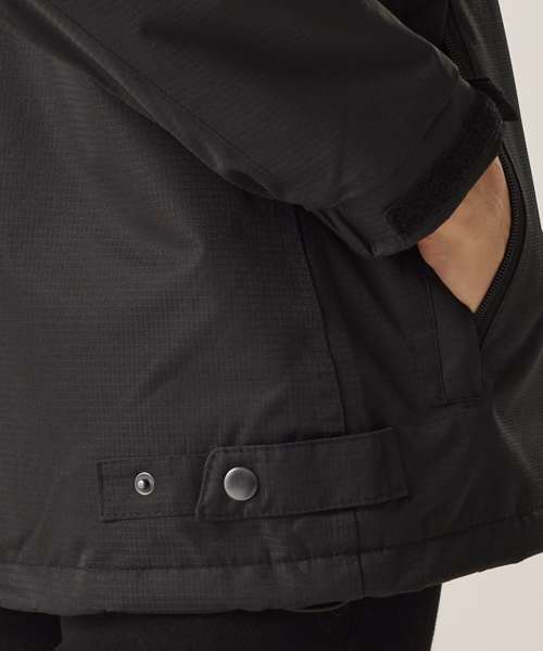 Waterproof Hydrafort polyester matrix dobby fabric with windproof fabric. 200 series anti-pill symmetry fleece lining with taped seams and fleece lined collar. Concealed hood with adjuster. Hook and loop fastening adjustable cuffs. Mobile phone pocket and 2 zipped lower pockets. Studded side adjusters and adjustable shockcord hem. Embroidery access with shaped fit. Thermoguard insulation to sleeves.