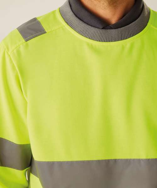 The Hi-vis Pro contract crew neck sweatshirt, from Regatta Professional, delivers comfort, visibility and durability on the job. It’s made from brushed polyester fleece and features a classic crew neck and ribbed trims. Certified for safety.