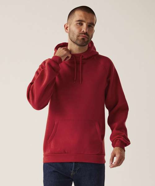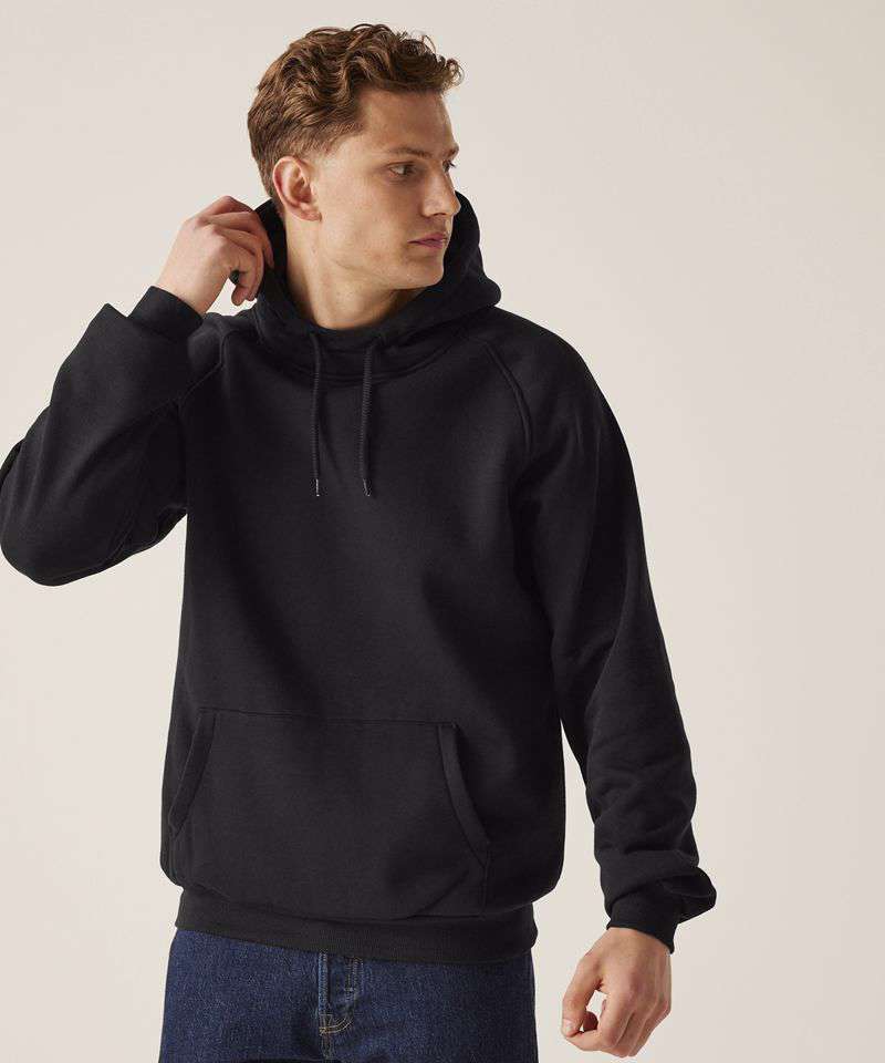 35% sustainable cotton and 65% polyester brushed back fabric. Grown-on hood with drawcords. Ribbed cuffs and hem.