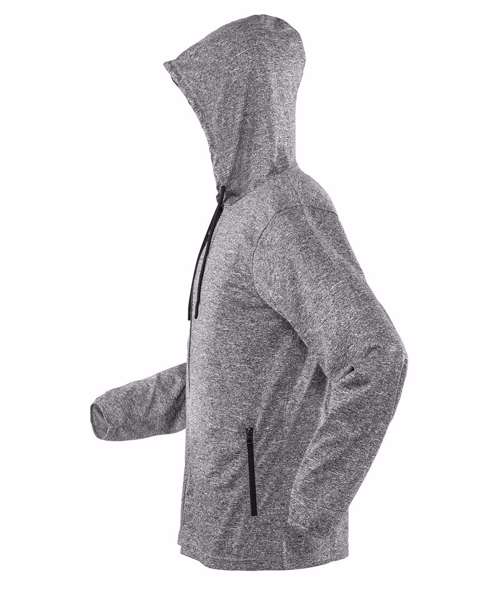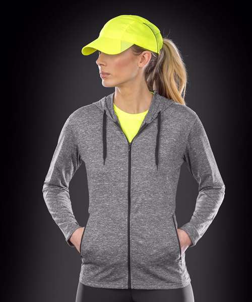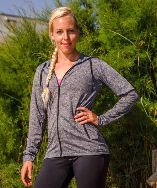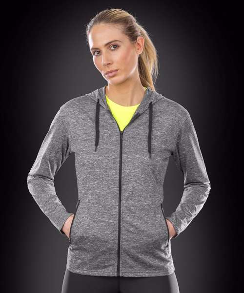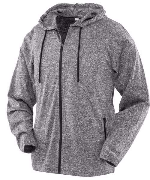 Super stretch lightweight t-shirt jacket hoodi in on-trend printed melange fabric with natural movement and sport cover.