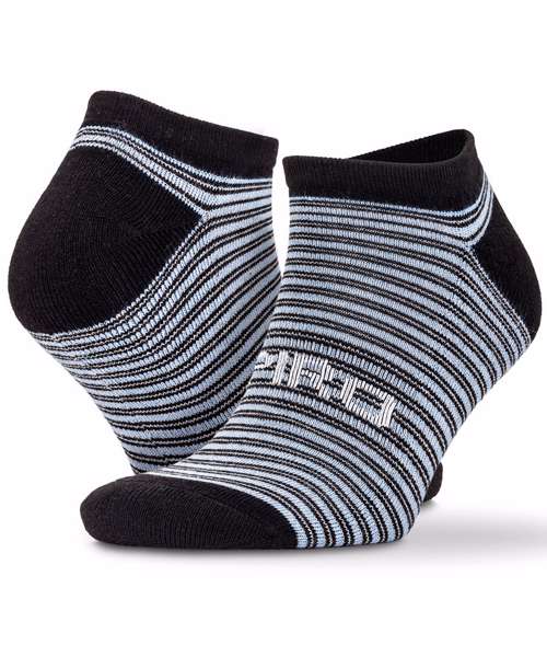 Antibacterial yarn. Fast-dry. Ribbed ankle cuff for secure fit. Coolmax® yarns keep cool and dry. Low cut. Contrast colour. Cushioned heel and toe.